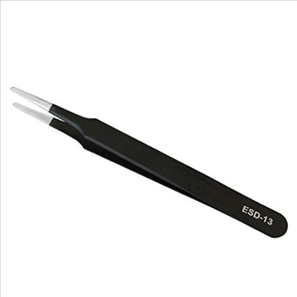 Resistive ESD coating helps protect electronics from static damage. Durable stainless steel material, non-magnetic and resistant to most acids and other corrosive agents. Precision machined for exact alignment and a perfect grip at the tips. Excellent for electronics, jewelry and other fine crafts, medical and laboratory work, cosmetic hair removal, and much more. The tweezer is made by antacid steel , resists corrosion , big strength factor , anti-staic , good elasticity , antimagnetic. It’s safe to pick up electronic components.