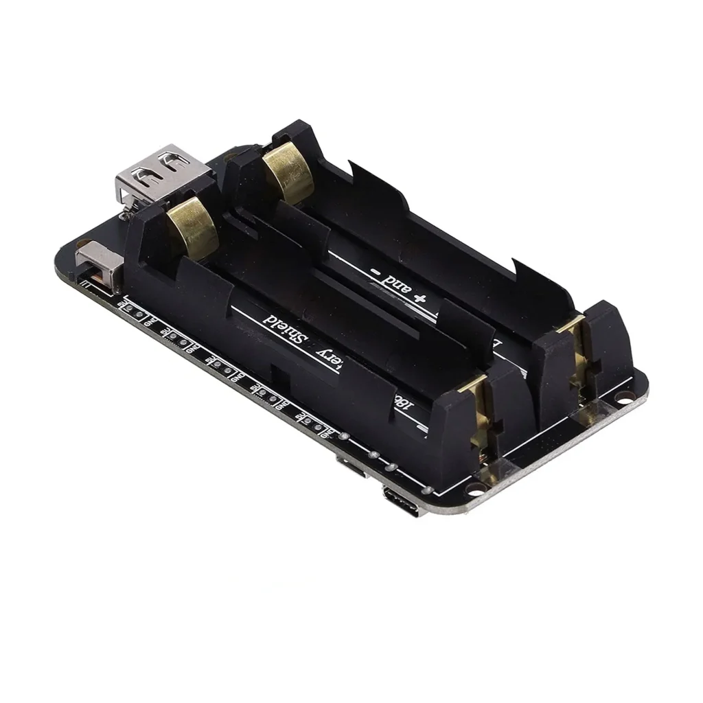 This 16850 battery holder for 2 batteries have micro and type-C charging inputs. You can install two 18650 batteries and supporting two voltage outputs of 3V/1A and 5V/2.2A (5x 5V/2A output ports and 5x 3.3V/1A output ports) and one 5V USB output.