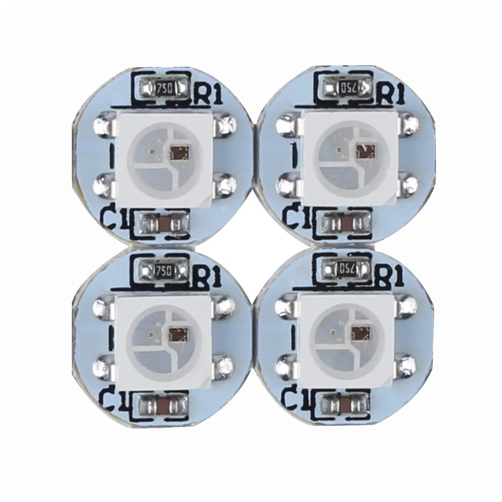 These are great little WS2812B RGB Addressable LED Module. They are very small, not even a centimeter in diameter. You can daisy chain multiples of these modules together and control each LED individually (addressable LEDs).