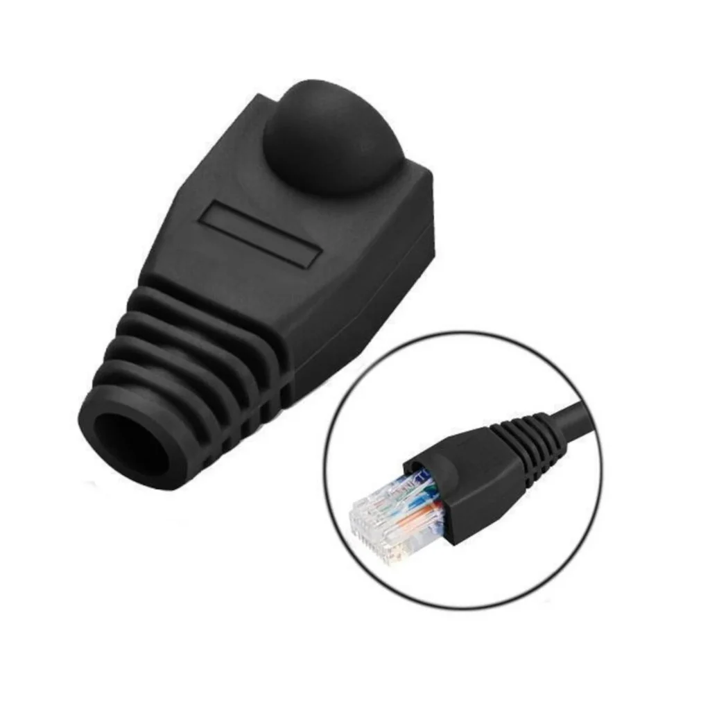 Features/Specs: Material: Rubber Connector type: RJ45 Cable type: Ethernet Colour: Black Hole cover Diameter: 7.5 mm Length: 26.5 mm Width: 14.2 mm Height: 15.2 mm Approx Weight: 2 gm