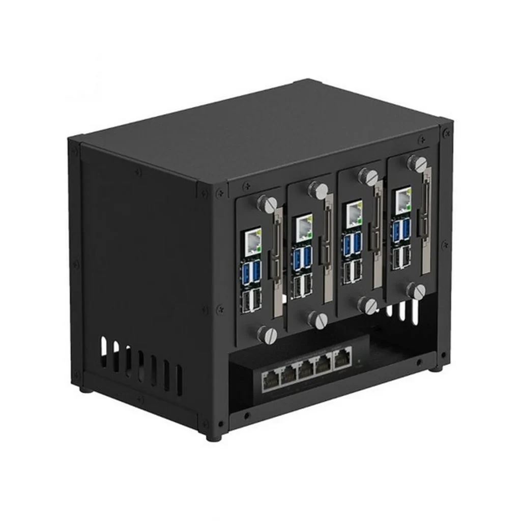 It’s designed to provide a desktop hardware solution for the RPi array. The fully complete case with compact design reserved enough space for 4 RPis, 4 2.5” SSDs, and an Ethernet switch, as well as 2 cooling fans.